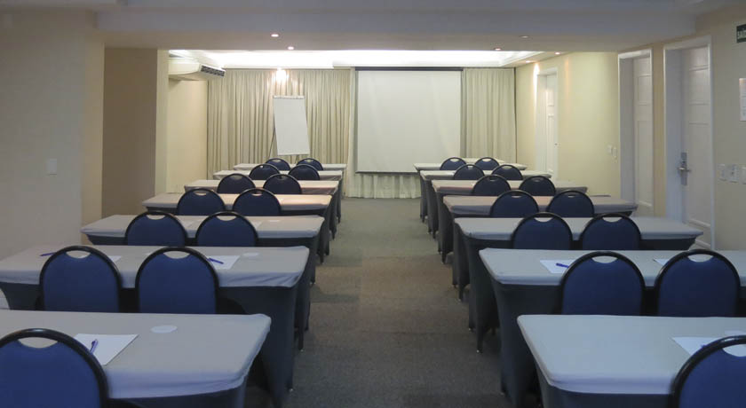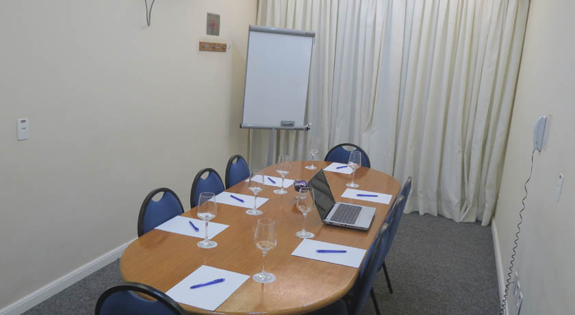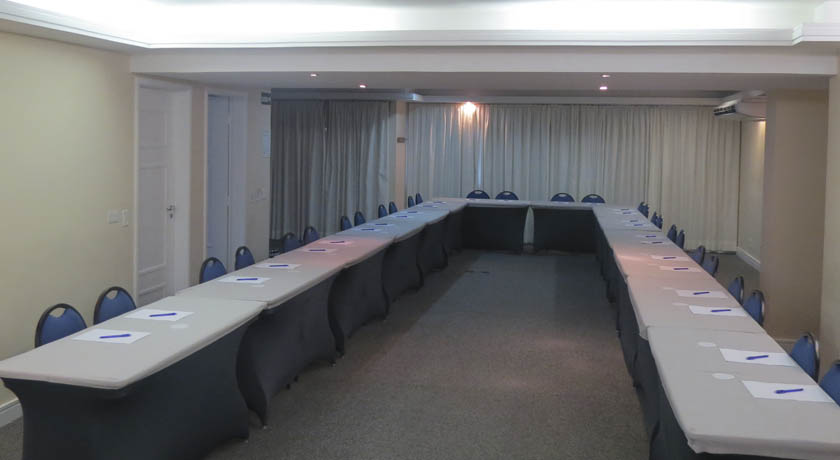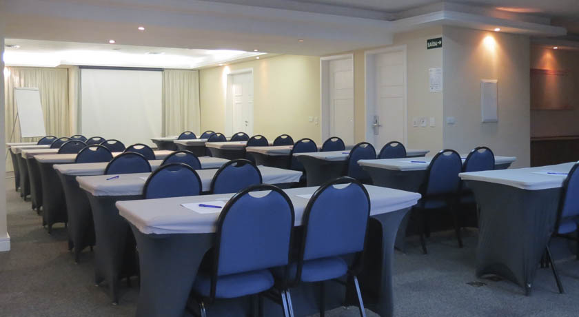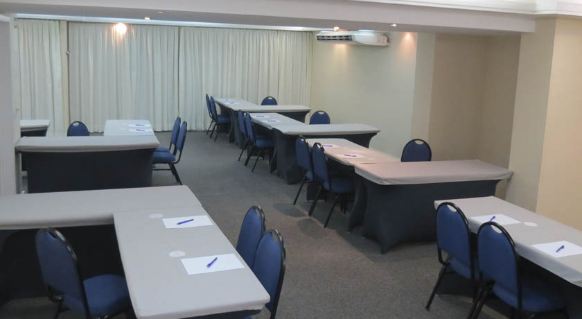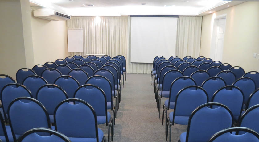 O hotel dispõe de 3 salas para eventos: 2 salas de reuniões e 1 sala de convenção com capacidade para 100 pessoas.